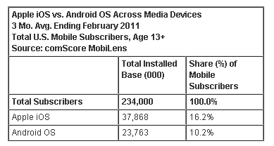 新的ComScore數(shù)據(jù)顯示,統(tǒng)計所有的移動通信設(shè)備,包括手機、平板電腦、iPodTouch等,蘋果iOS平臺在美國遠超Android59%。換句話說,蘋果16.2%的移動設(shè)備市場份額超過了Android的10.2%。