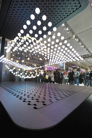 圖:漢諾威信息通信技術博覽會向觀眾展示“云計算”模型