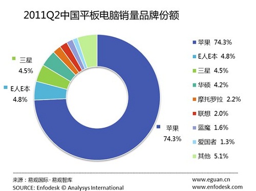 2011年第2季度iPad在平板電腦銷量份額跌破75%