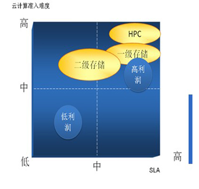 從企業(yè)戰(zhàn)略咨詢分析師的角度,我認(rèn)為IBM的戰(zhàn)略布局和資源整合策略確實(shí)是IT領(lǐng)域戰(zhàn)略規(guī)劃很好的教科書(shū)(起碼對(duì)于我個(gè)人而言)。精準(zhǔn)的定位市場(chǎng)、以具有明顯技術(shù)細(xì)分優(yōu)勢(shì)的產(chǎn)品或服務(wù)切入市場(chǎng)、設(shè)定較高的技術(shù)準(zhǔn)入門(mén)檻,這些戰(zhàn)略舉措不僅有助于IBM快速占領(lǐng)新生市場(chǎng)戰(zhàn)略制高點(diǎn),同時(shí)保證了其可持續(xù)競(jìng)爭(zhēng)優(yōu)勢(shì)和利潤(rùn)空間。從下面的云計(jì)算準(zhǔn)入/云服務(wù)SLA象限圖上,當(dāng)很多廠商還在考慮“哪塊云彩有雨”時(shí),IBM已經(jīng)完成在云端提供HPC和高增值二級(jí)存儲(chǔ)服務(wù)的布局,掌控了利潤(rùn)最豐厚的云計(jì)算高端市場(chǎng)。從我個(gè)人的預(yù)測(cè),IBM在云端提供一級(jí)存儲(chǔ)服務(wù),應(yīng)該是其云計(jì)算高端戰(zhàn)略的下一個(gè)布局。