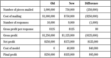 請(qǐng)注意,郵寄的純利潤(rùn)增加了$125,000,甚至你扣除由于數(shù)據(jù)采集而產(chǎn)生的軟件、硬件即人力資源方面的$40,000,純利潤(rùn)還增加了$85,000。建模的投入轉(zhuǎn)化成了200%的收益,這遠(yuǎn)遠(yuǎn)超過了BB&CC對(duì)這一項(xiàng)目的ROI要求。