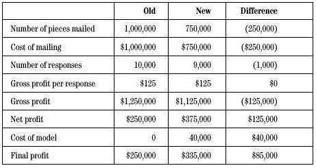 請注意,郵寄的純利潤增加了$125,000,甚至你扣除由于數據采集而產生的軟件、硬件即人力資源方面的$40,000,純利潤還增加了$85,000。建模的投入轉化成了200%的收益,這遠遠超過了BB&CC對這一項目的ROI要求。