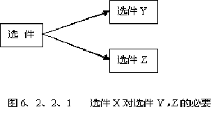 必要關(guān)系發(fā)生在選件與選件之間,即選擇一個(gè)就必須選擇另一個(gè)或多個(gè)。比如,客戶首先選擇了某種CPU后,就必須選擇某種特定的電腦主板以及內(nèi)存。其關(guān)系示圖如6、2、2、1所示。