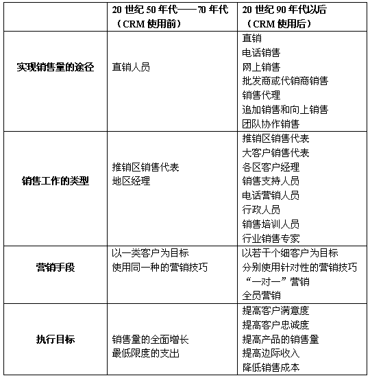 當(dāng)我們處在一個快速變遷的時期,我們無法駕馭變革,只能走在變革之前,21世紀(jì)企業(yè)管理中面臨最大挑戰(zhàn)的是:使組織發(fā)生變革的領(lǐng)導(dǎo)者。而對于銷售部門的領(lǐng)導(dǎo)者--銷售經(jīng)理,也應(yīng)當(dāng)意識到銷售正在或?qū)⒁瓉硪淮未笞兏,我們可以預(yù)言,企業(yè)的銷售將趨向多樣化、自動化和知識化。而這種變革的到來與CRM的出現(xiàn)是密不可分,甚至可以說是相輔相成的。