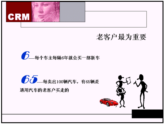 中秋節(jié)之前,貴州一家房地產(chǎn)企業(yè)策劃部的經(jīng)理告訴我說,他們?yōu)榱嘶貓罂蛻,?zhǔn)備投入幾十萬元邀請北京某家歌舞團到他們的小區(qū)去演出。我問道,你了解你的客戶嗎?他們是不是需要這種"載歌載舞"的服務(wù)方式,如果一方面你提供給客戶的房子在漏水,而又沒有人按照相應(yīng)的流程去進行處理,另一方面你卻在耗費資財"載歌載舞"?蛻舨⒉灰欢ㄙI你的帳,你有錢搞歌舞晚會,為什么不花錢把服務(wù)搞好,對方聽了之后久久不語。通過CRM能夠有效地摸清客戶中存在的問題,從而也能夠非常有針對性地實現(xiàn)一對一的客戶服務(wù)。在以往缺乏相應(yīng)的手段來摸清客戶的問題,以便給客戶提供相應(yīng)的解決辦法,所以效果不夠理想。而現(xiàn)在,通過CRM能夠細(xì)分客戶的類型,正確地評估客戶的價值,從而根據(jù)客戶價值來采取相應(yīng)的服務(wù)手段,在相同投入的情況下,解決客戶問題的效果要比以往有極大的提高。