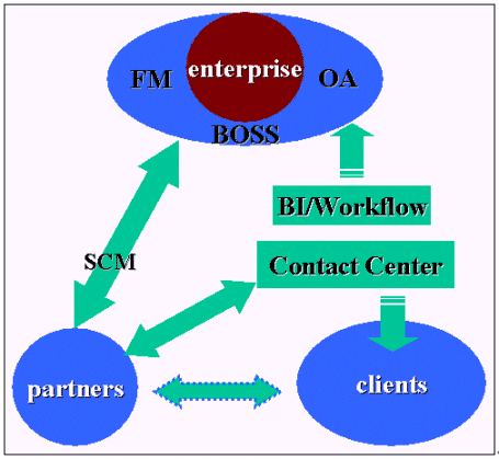 根據(jù)上面的分析SCN新一代客戶聯(lián)絡(luò)中心建成后將具備較強(qiáng)的雙向交互能力,為了更好的統(tǒng)一和完善整個(gè)客戶關(guān)系管理框架,我們希望盡可能的將企業(yè)內(nèi)外的所有溝通都綜合到一個(gè)平臺(tái),他融合了企業(yè)的主頁,企業(yè)的客戶聯(lián)絡(luò)中心,企業(yè)的內(nèi)部辦公自動(dòng)化網(wǎng),企業(yè)資源管理系統(tǒng)等這樣客戶只需要通過這樣的一個(gè)平臺(tái)便可解決所有問題,或者說是客戶、員工等企業(yè)相關(guān)的任何個(gè)體之間的交流可以有多個(gè)表現(xiàn)形式如電話,電郵,網(wǎng)絡(luò),辦公自動(dòng)化系統(tǒng),短信等等但最終都轉(zhuǎn)移到同一個(gè)平臺(tái)上來實(shí)現(xiàn)交換。為什么需要這樣呢?只有這樣才能最好的實(shí)現(xiàn)統(tǒng)一信息。信息統(tǒng)一了,我們就可以建立客戶資訊的數(shù)據(jù)倉庫了,有了統(tǒng)一的數(shù)據(jù)信息,任何基于客戶的分析、細(xì)分都可以實(shí)現(xiàn),而客戶的任何遺留痕跡如嗜好,習(xí)慣,忠誠度,消費(fèi)意愿等等都可以方便的提取,最后通過商業(yè)智能輔助進(jìn)行客戶生命周期管理、市場營銷、財(cái)務(wù)管理和戰(zhàn)略決策等。形成一個(gè)良性循環(huán)的客戶關(guān)系管理生態(tài)鏈。由于客戶關(guān)系管理將涉及到各部門之間的協(xié)調(diào)和合作,業(yè)務(wù)模式變革等眾多方面,在此不作詳細(xì)的描敘,本人將在另外的文章中專門來探討客戶關(guān)系管理中長遠(yuǎn)規(guī)劃的問題。