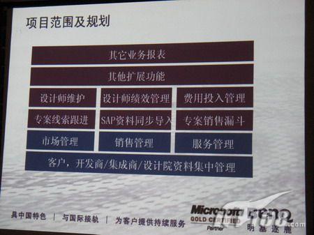 尤其值得注意的是,明基逐鹿這次為和成實(shí)施的CRM項(xiàng)目中除了著重于經(jīng)銷(xiāo)報(bào)備和工程報(bào)備之間的沖突管理、報(bào)備分析外,還特別突出了衛(wèi)浴行業(yè)的銷(xiāo)售特點(diǎn),即在行銷(xiāo)管理、銷(xiāo)售管理、服務(wù)管理加上客戶(hù)這些傳統(tǒng)項(xiàng)目外,特別強(qiáng)調(diào)了開(kāi)發(fā)商/集成商/設(shè)計(jì)院資料集中管理。這有助于和成從上游、第三方影響銷(xiāo)售對(duì)象。