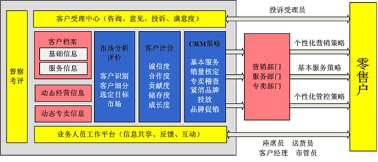 客戶投訴服務(wù)中心:在省公司設(shè)立集中的客戶投訴服務(wù)中心,為零售客戶提供投訴、咨詢服務(wù)等,在提高零售客戶滿意度的同時(shí),也為煙草內(nèi)部的考核提供依據(jù)。