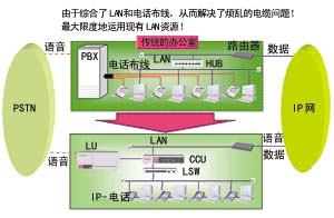 對(duì)于全部采用IP PBX的企業(yè),在完成數(shù)據(jù)網(wǎng)布線的同時(shí),也等于完成了電話網(wǎng)的布線,可大大節(jié)省布線成本,從而解決了繁雜的電纜問(wèn)題(圖一)。