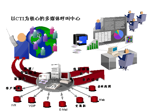 相比之下,以CTI技術(shù)為核心的呼叫中心才有可能打破這些局限,成為真正具有開(kāi)放性、可靠性、靈活性、統(tǒng)一性的多媒體呼叫中心。優(yōu)利公司提供的以CTI技術(shù)為核心的呼叫中心,具有統(tǒng)一的CTI核心組件、統(tǒng)一的智能轉(zhuǎn)接策略、統(tǒng)一的呼叫統(tǒng)計(jì)和業(yè)務(wù)統(tǒng)計(jì)、統(tǒng)一的業(yè)務(wù)代表座席應(yīng)用、統(tǒng)一的管理配置環(huán)境及完善的互聯(lián)網(wǎng)服務(wù)接口功能模塊,是客戶選擇呼叫中心與互聯(lián)網(wǎng)技術(shù)相結(jié)合的有效方案之一。