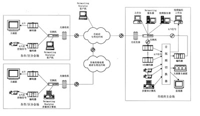 由于政府部門所跨的地域較廣,彼此之間的距離較遠(yuǎn),而且各級政府部門的會(huì)議較多,因此,利用修建好的信息高速公路建立一個(gè)基于IP網(wǎng)絡(luò)的視像會(huì)議系統(tǒng)具有一定的實(shí)用價(jià)值。這種系統(tǒng)既可以提高政府部門的辦公效率以及政府專用網(wǎng)絡(luò)的利用率,又可以節(jié)省政府部門的會(huì)議費(fèi)用。以下介紹在IP寬帶網(wǎng)上構(gòu)建電視電話會(huì)議系統(tǒng)解決方案。
