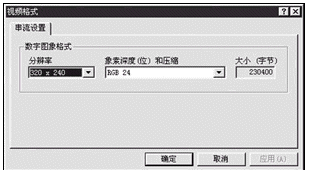 3.選擇視訊格式。點(diǎn)擊中間三個(gè)按鈕中的第一個(gè),在彈出的窗口中,分辨率推薦選擇320 x 240。