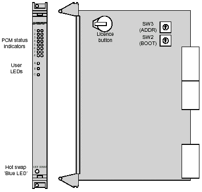 Septel cP板卡的前板上有狀態(tài)指示器。當(dāng)板卡重置以后,所有的PCM狀態(tài)指示器保持開的狀態(tài),直到板卡上的軟件開始運(yùn)行。