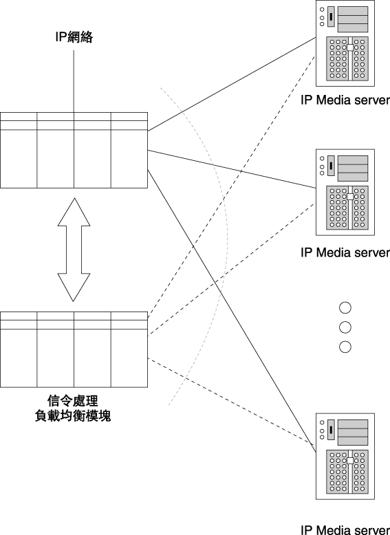 推薦使用信令與媒體流分離模式,前端服務(wù)器兩臺互為備份地配置,實現(xiàn)信令控制功能和負(fù)載均衡功能,后臺由一組媒體服務(wù)器池組成,實現(xiàn)媒體流的處理。這樣的架構(gòu)可以保證整體系統(tǒng)高可用性和可擴(kuò)展性