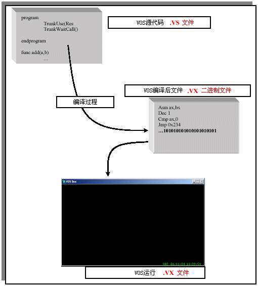VOS源代碼文件是使用VOS語言編寫的文本文件。VOS源代碼文件通過如下格式加入文件夾Application中的項目中:Application+Vos源代碼文件名: