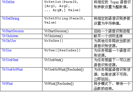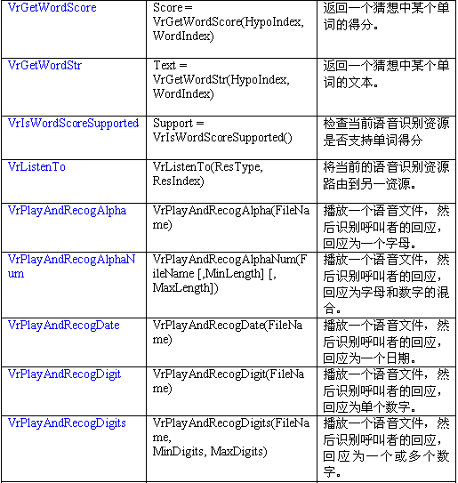 語音識別資源把呼叫者的語音轉(zhuǎn)變?yōu)槲谋咀址。一個(gè)VR資源可以對一個(gè)語音流數(shù)據(jù)(來自一中繼或會議資源)進(jìn)行識別。