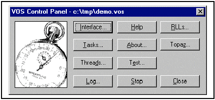 VOS啟動(dòng)時(shí),用戶界面是一個(gè)稱為VOS控制面板(VOS Control Panel)的對話框。VOS對話框如下所示: